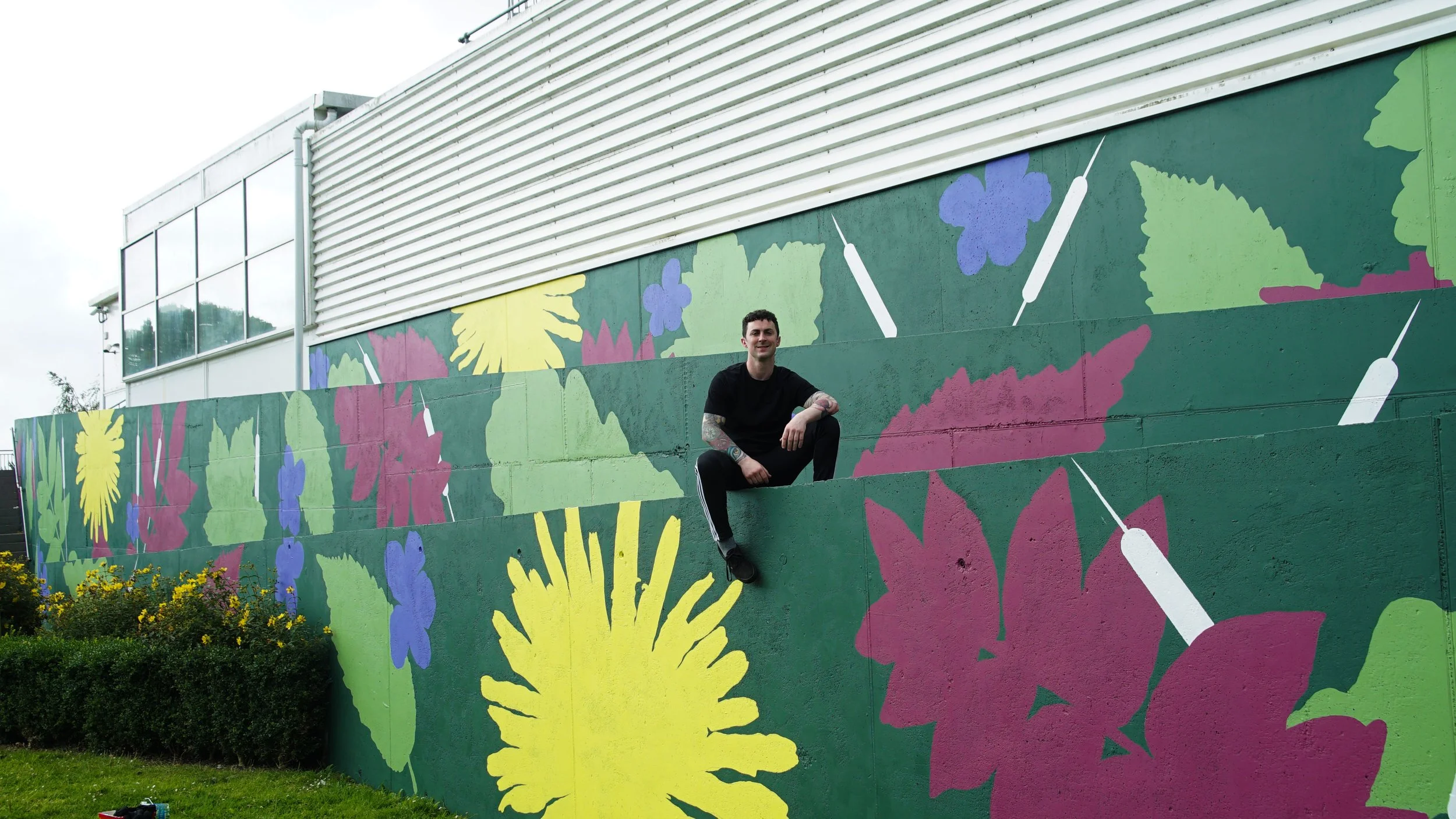 This large-scale, three-stage mural was developed by Paul Byrne in collaboration with a group of adult participants from the Forward Steps Resource Centre in Tullow. The project focused on connection to place, using the biodiversity of the adjacent park as a starting point for creative exploration. Through a series of workshops, participants observed, discussed and interpreted the natural environment around them, translating local flora and textures into bold visual elements that would inform the final design.