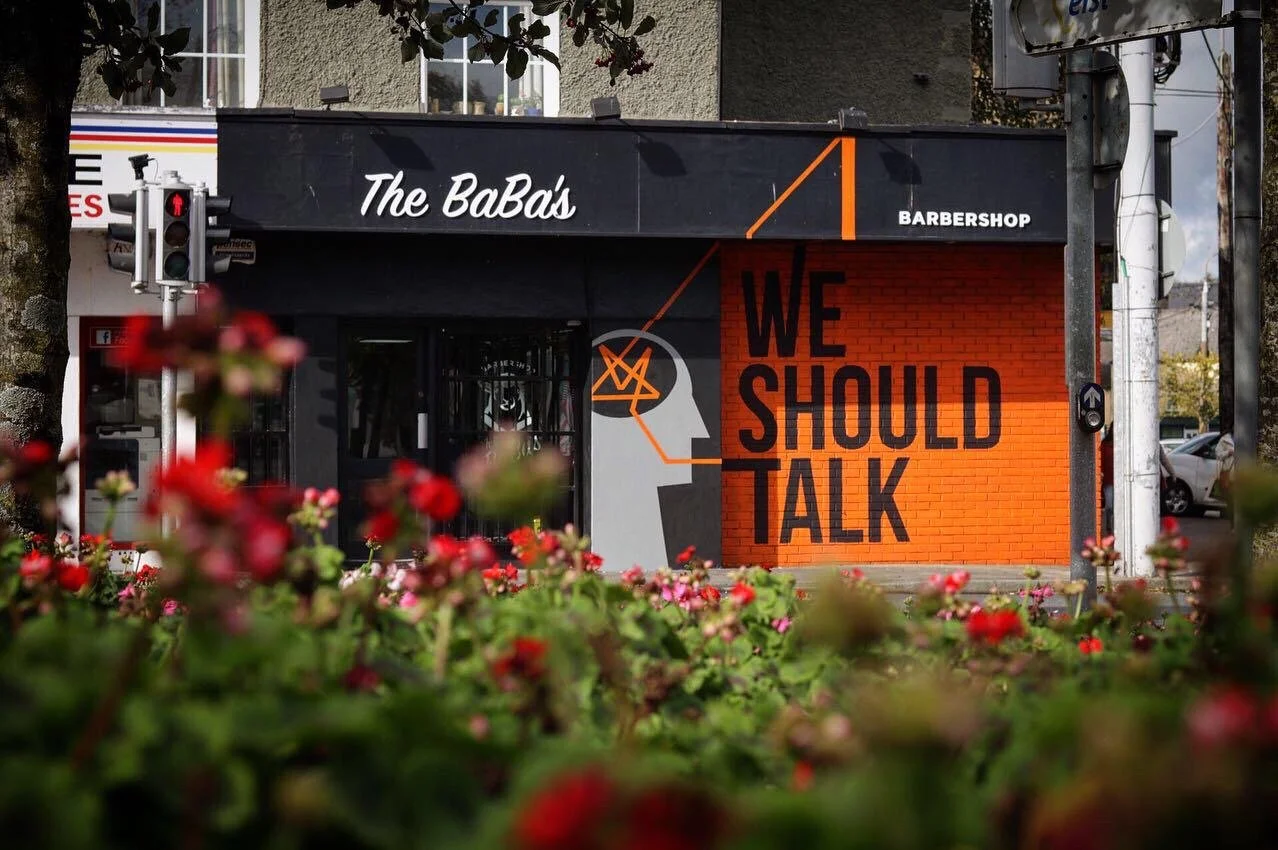 “We Should Talk” is a typographic public artwork by Paul Byrne, created in collaboration with a local barbershop in Carlow Town. Positioned to face a busy junction, the piece uses a simple, direct message to prompt reflection and encourage conversation around mental health within the everyday flow of the town. By situating the work within a familiar and highly visible setting, the project brings an often-sensitive topic into public view in a way that feels accessible and non-confrontational.